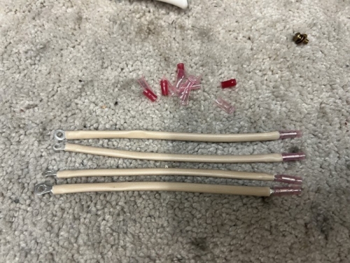 I spent about an hour researching fusible links and found a lot of valuable information on VAF. I decided to slightly modify the FLK-1 kit from B and C that I had on hand by using bare-metal components, eliminating any plastic that could potentially melt if the fusible link were called into action. I constructed the wire using a butt splice, removing the plastic from one end and terminating the other end with a bare ring connector. Then, I covered the wire with silicone-rubber-covered fiberglass sleeving. I made four fusible links, but I should have created them in two different lengths.