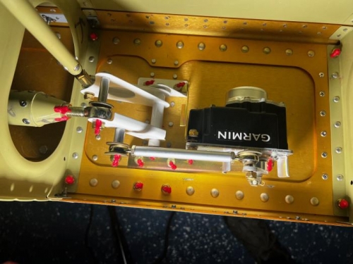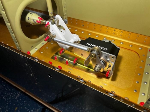 I printed out the instructions from the G3X manual and installed the GSA28 roll servo for Auto Pilot. I had to remove the lower bellcrack bracket and install the Garmin braket in its place. The hole for the servo control arm was already drilled. I didn't torque anything yet because I have to finish the right flap to get everything mounted and lined up before finishing up the final torques!