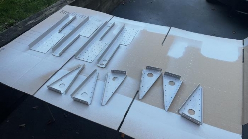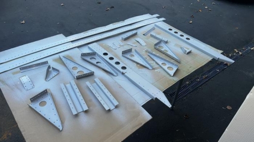 Primed all parts for Section 25. Clecoed the Center Section bulkhead parts together. Final drilled and riveted all parts together after primer cured.