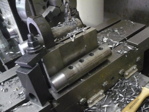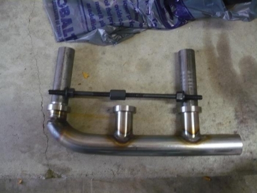 Cut and turned the left over 1.25" dia. bar stock. I think I can make a jack arrangement between the two bars and get the stretch back in the manifold.