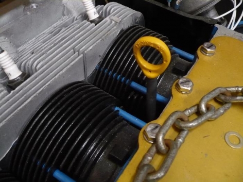 Used a tapered punch to enlarge the end of the tube so the O-Ring wouldn't have to work so hard going in. Cut the stick so it is about 1/8" above the bottom of the oil pan. Plan to mark it once it's on the landing gear, 4qt, 5qt, 6qt. Doubt I'll ever run more than 5qt but ya never know.