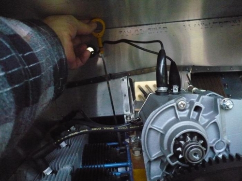Having the air shroud high enough allows the dip stick to come out. Changing the oil and marking the stick the next couple of days.