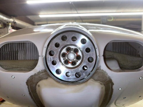 Ready to start relocating the cowling top piece's front face at the prop hub opening.