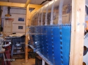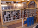 Framed walls and hung plywood sheeting for storage