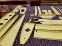 Primed Elevator Parts labeled and dimpeled