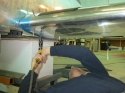 Rt flap bottom skin cut, rivited, and hand bent fo