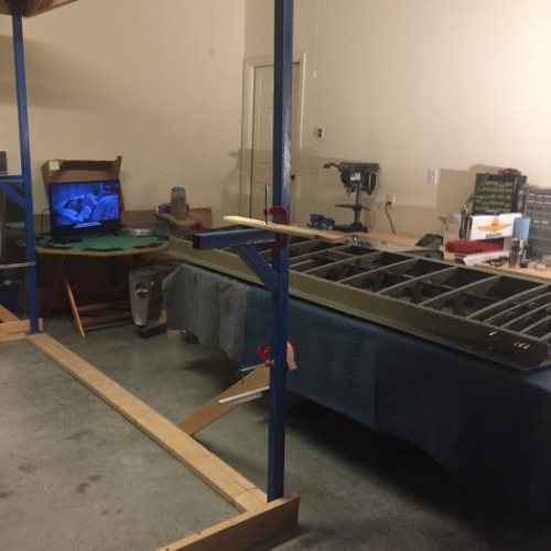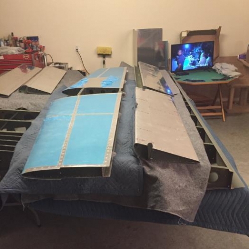 Wings were begining to get a little difficult to work on still hanging on the jigs so Justin and I decided to take them off as they are rigid enough now to be moved around. We are working on getting Ailerons and Flaps installed now.
