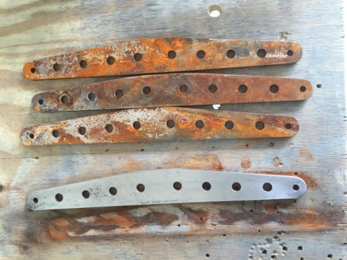 From the previous builder leaving these in the bottom of a damp plastic bin they were pretty rusty. Cleaned them up on the scotchbrite wheel and lightly sanded the bolt holes not to disrupt the tight fit for the wing bolts!
