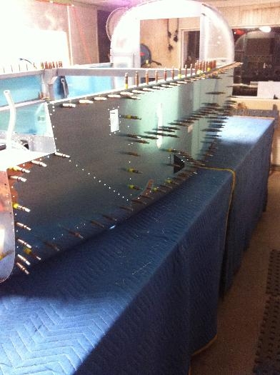Re cleco port side skin in place ready for riveting after completing RH skin.