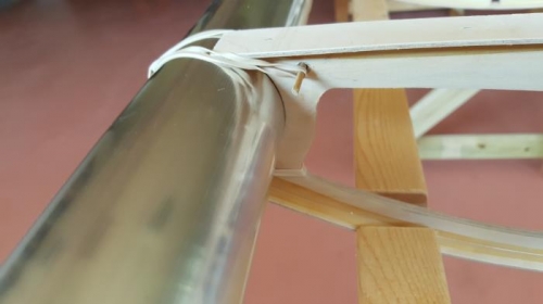 Fitting ribs and drag braces to the spar tubes. Drilling spars for drag braces riveting.