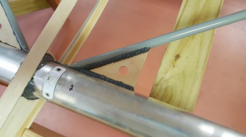 Installation of plywood gussets and stringer.