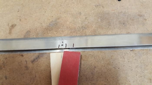 Gluing ailerons and flaps trailing edges. To abrade the inside of the trailing edge I used the 1" sanding belt and piece of thin plywood. After cleaning with acetone I applied glue and rivited trailing edges to ribs caps.