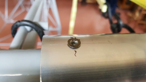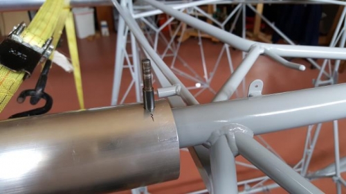 Finishing setting wings to fuselage. I used the vinyl tubing as drill bit guide to drill pilot holes. For final drilling (still undersize for later riming) I made the drill bit with short spiral so it will not enlarge the top hole in the spar.