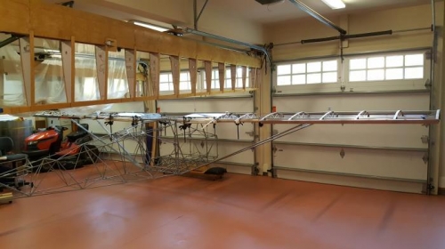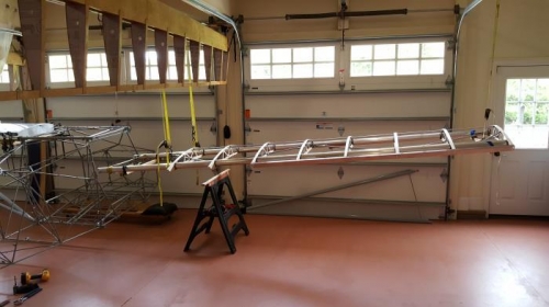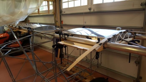 Refitting right wing to fuselage. Installation of the right fuel tank. I am waiting for some of aluminum angle from Aircraft Spruce for fuel tank brackets and I started to work on fuselage flooring.