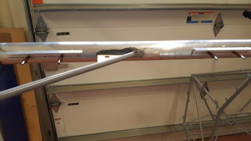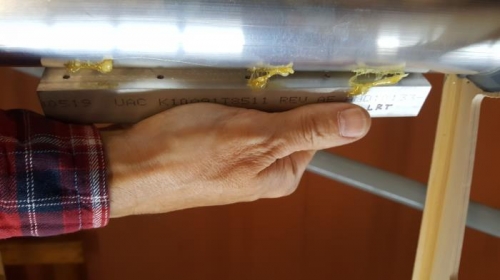 Working on mount brackets for fuel tanks installation. I clamped sheet of plywood to the bottom of the spar tubes, clamped brackets to fuel tanks, put tanks on plywood and temporary glued brackets to spars with Gorilla glue. Next morning I removed fuel tanks and drilled rivet holes in mount brackets. Then I brock out brackets from spars and cleaned glue (Gorilla glue is very easy to remove).
