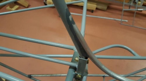 Sanding glue joints on stringers.