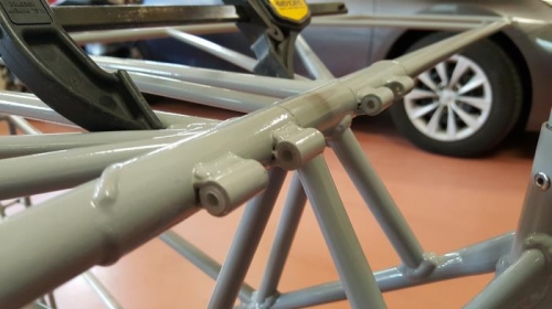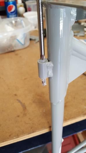 Installing nylon bushings into elevator and rudder hinges. Working with tail flying wires.