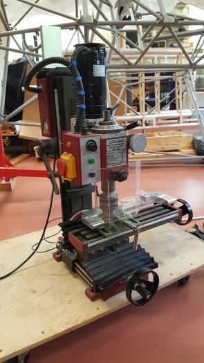 Fitting the Grove landing gear brackets to the fuselage. Borrowed a milling machine for that.