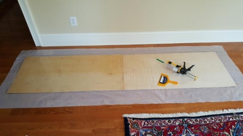 Gluing plywood for false ribs.