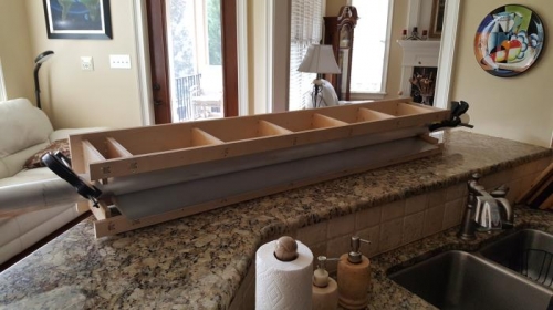 Gluing nose ribs into aluminum leading edge. Put it on the higher elevation to get a warmer temperature for faster epoxy curing, it is kind of cold on the floor.
