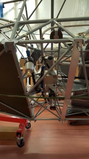 Working on the roll servo access on the bottom of the fuselage.
