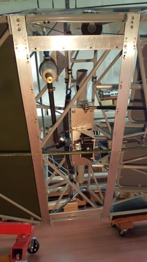Installing the roll servo access frame on the bottom of the fuselage.