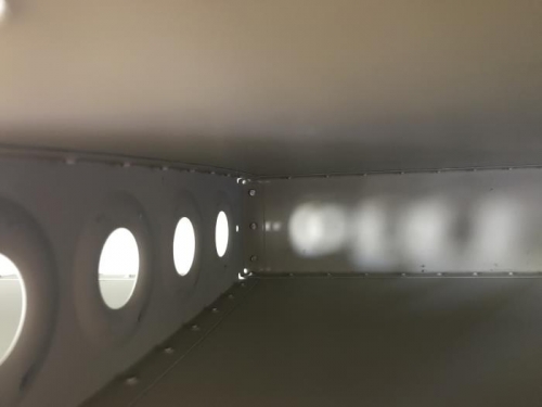 - Cleco on the rear spar assembly and install the remaining rivets along the rear spar and end ribs with a squeezer.