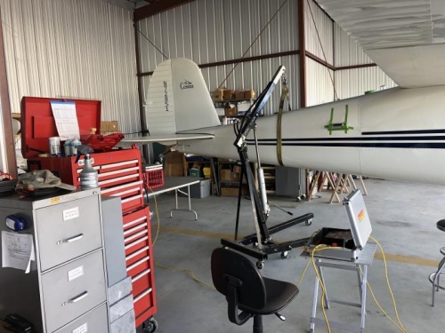 Used Kurt's engine hoist to set up airplane on scales in level attitude. Took weights and measurments, and made calculations per Cessna Weight Computation instructions.