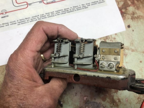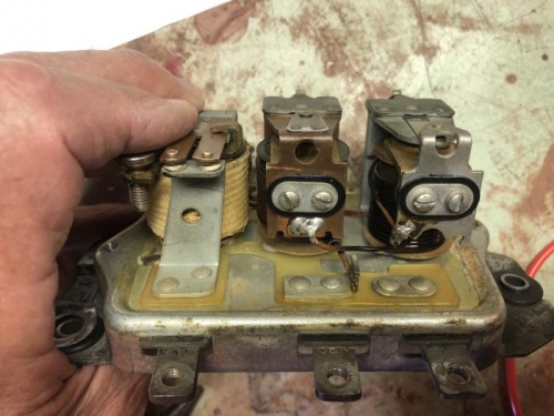 Regulator: Checked coils, resoldered internal connections, reset voltage and current adjustments to maximum possible, adjusted point gaps.