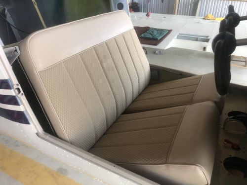 Called Airtex, got instructions on making holes for pins in seatback vinyl. Replaced pin pull string with wire. Installed seatback and seats. Perfect fit, but there is a left and right.