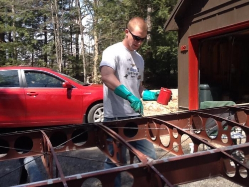 Jeanne and Sam stripped the right leading edge while Don and I did some riveting on the left wing repairs. Bill arrived and inspected - we made a joint decision that the right leading edge is not good enough to use. We will make a new one. Jeanne bummed out after wasting the whole afternoon stripping in the driveway.
