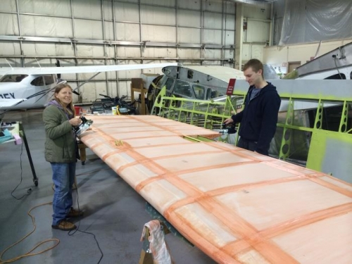 Sam and Jeanne ironed the wing while I worked on the RV tank. Nice and smooth now, ready for spray coats.