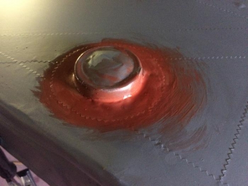 Kurtis Arnold helped me flip wings to top side up. Completed gas filler neck repairs. Ironed down tapes where necessary and spot sanded other areas. Cleaned and sprayed on second coat of Poly-Spray.