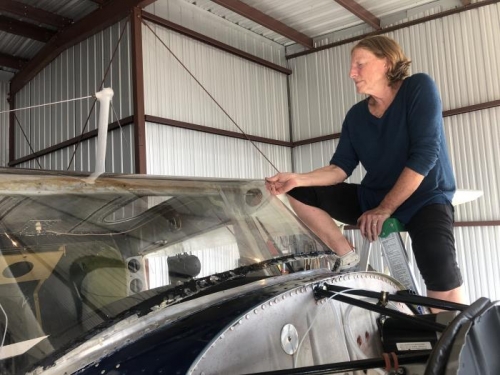 Conferred with Bill amd Sam, decided windshield must be removed and reset. Jeanne and I spent the afternoon removing it. Black sealant terrible to get off.