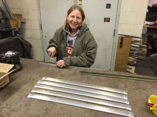 Set up drill guide and started Jeanne drilling holes while I went flying. Such a deal! She drilled and deburred all six angles.