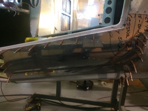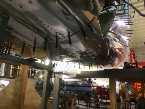 Clecoed belly skin in place.