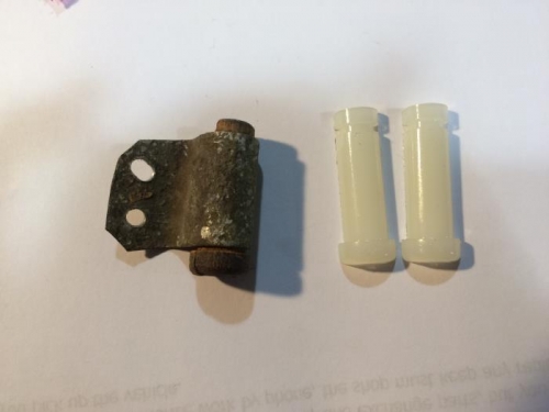 Removed old fairlead in tail near where cable exits fuselage. Drilled out two rivets to get it out. Installed nylon inserts in place of old composition parts. Reinstalled temporarily with clecos.