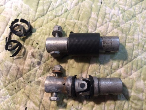 Cleaned up work area, put away tools. Corrected motor mount bolt order for Sandy. Removed remains of old universal boots and tested fit on new hoses. Hung chains to dry.