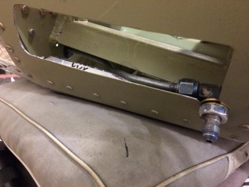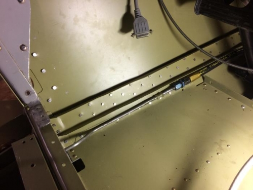 After Jeanne left I got Bill to help me jack up lft side and remove gear leg. I noticed that I had not trimmed flange on bottom skin to size, and that was what was causing diffculty in installing brake line. I trimmed it with the new oscillating saw, and was able to install all pieces of left brake lines. Will fll with fluid and test next.