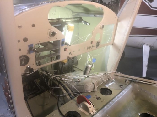 Ordered placard set from Spruce. Reinstalled yoke tube ball and sockets with new hardware. Installed ...... clamps to hold wiring. Tightened up switches etc. Installed antenna connectors on avionics trays. Installed (with clecos) avionics tray. Mointed encoder bracket in original location on firewall.