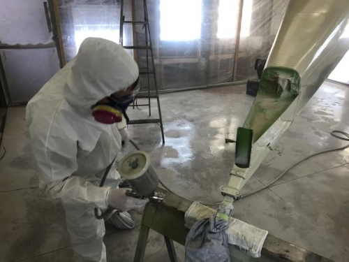In the morning Sam and Jeanne masked almost entire fuselage. In the afternoon we finished prepping and sprayed primer coat.