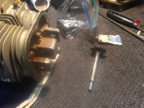 During odd times this past week I inspected the six cylinders from Ken Sherwood. Found 4 serviceable with minor valve lapping, one requiring extensive lapping, and one where the valve seat looked really bad and I did not proceed with that one. Determined from the overhaul manual that in the C85 useage of these cylineders only two valve springs are required. Ordered fine lapping compound for a final poshish next week.