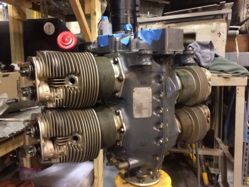 Installed new ring set from Fresno, good fit. Installed pistons in cylinders and cylinders to engine. Installed push rods, rockers, checked lash. #2 cylinder exhaust valve near upper limts ( 30 -110).