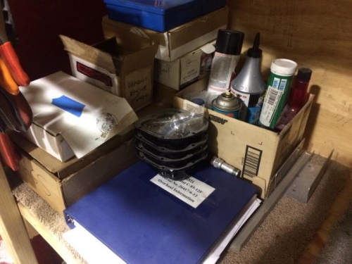 Painted motor mount. Packed up all unused engine parts and stowed away in T hangar. Went through all airframe parts in big hangar and also my T hangar, sorted and categorized, placed in bins. Met with Jeanne and Bill for planning next steps.