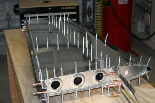 Drilled Ribs to Spars and Skin to Rib and Spars per Van's manual disassembled for deburring and priming.