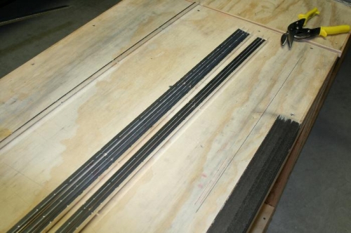 Cut out the individual stiffeners, and smoothed the edges. Clecoed the stiffeners to both L & R elevator skins.