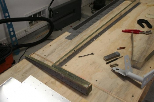 Clecoed the right elevator skin to the skeleton and final drilled skin.