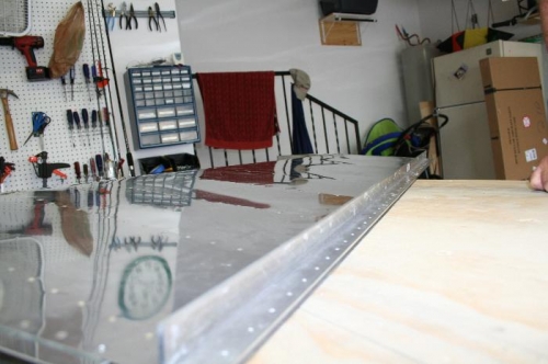 Final set of the trailing edge rivets accomplished by using the Steel plate in my table as the bucking bar.