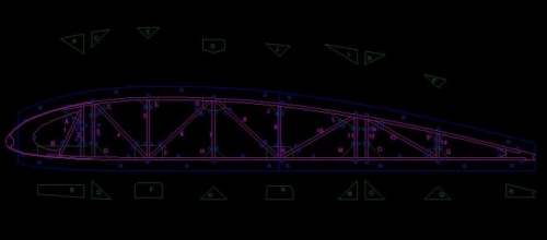Je débuté par redessiné les ribs pour pouvoir faire un gabarit de montage et de découpe. J'en profite aussi pour dessiné les différente pièces de ply 1/4" et 1/16" que je vais pouvoir coupé avec le laser. Je vais sauvé beaucoup de temps et la précidion va être impeccable !