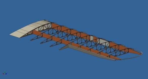 Après étude du plan et certaine chose que je ne comprenais pas bien, j'ai décidé de dessiné l'aile en 3D, question de mieux voir comment c'est monté, mais surtout de validé les dimensions du plan. Certain constructeur on mentionné sur le Forum du Hatz que les dimensions du "taper" des spar n'était pas correct. Selon mon dessin 3D, c'est effectivement le cas.. Je pense que je vais continuer dans le dessin et d'ajouté quelques pièces pour faire certain que tout est ok...